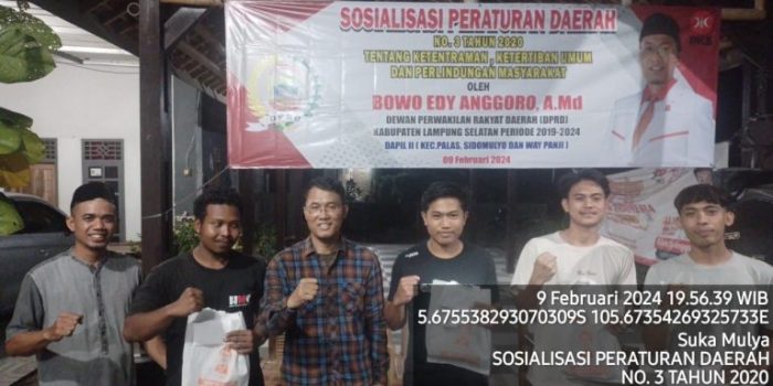 Demikian dikatakan anggota komisi IV DPRD Kabupaten Lampung Selatan (Lamsel) Bowo Edi Anggoro A,Md., saat dirinya menggelar Sosialisasi Peraturan Daerah (Sosperda) Nomor 3 Tahun 2020 yang berlangsung di Desa Sukamulya, Kecamatan Palas, pada Jumat (9/2/2024).